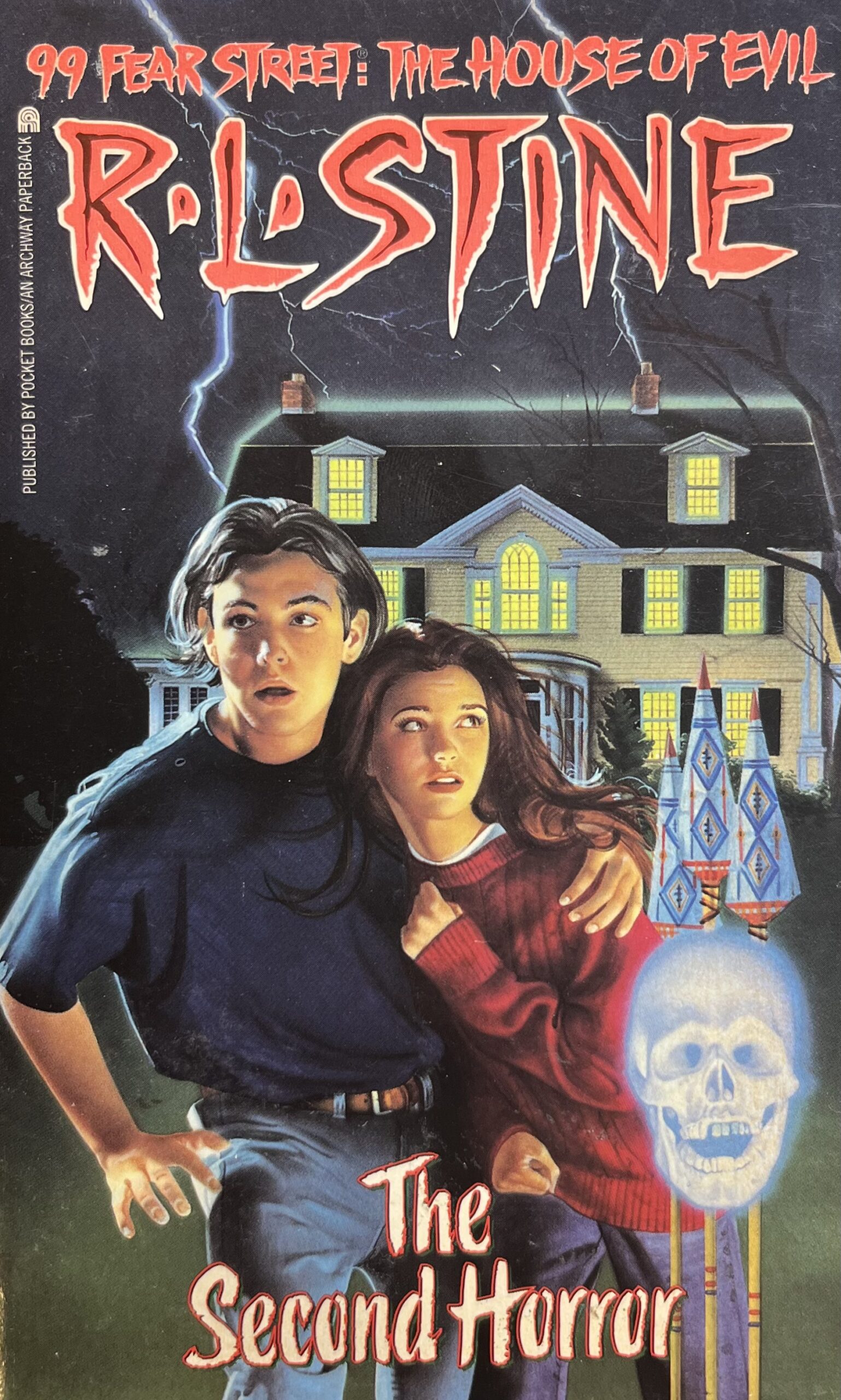 Kody’s halfway to the street when the force of the explosion throws her to the ground, and she turns to see 99 Fear Street overcome with flames. [Let’s hope there was no-one else inside!] As she watches, she sees rats thrashing wildly in the fire and rising into the air. And then human forms appear, black shadows, the tortured spirits of those buried under the house — ‘Men and women, wailing and howling, thrashing in the flames as they rose higher, higher, and disappeared into the starless black sky.’ As she continues to stare into the flames, Kody apologises to her sister for not getting a chance to say goodbye.